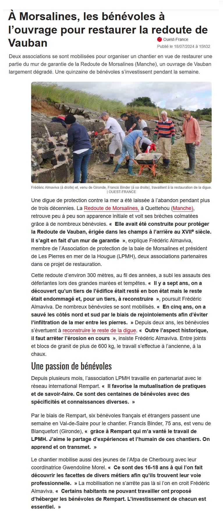 Juin 2021 – article de Ouest France sur la venue des élèves de la Maison Familiale et Rurale de Valognes